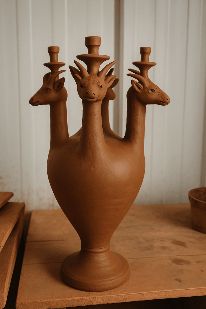 Geyik figürü, Anadolu’dan Orta Asya’ya uzanan geniş coğrafyalarda bereket, güç ve doğayla ilişkilendirilmiştir. Bu çömlek, geleneksel kültürel motifleri modern bir estetik anlayışla harmanlayarak geçmiş ile günümüz arasında köprü kurar.